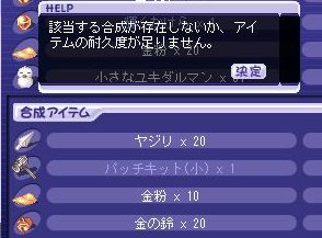 金色の鈴×20、金粉×10、ヤジリ×20、パッチキット(小)×1を合成した
